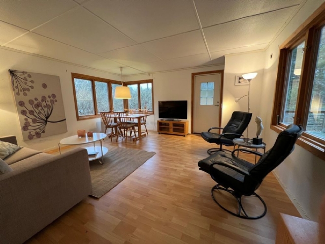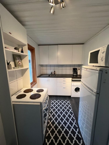 I stugan finns sovrum med dubbelsäng, vardagsrum med ny stor bäddsoffa(160), matbord och TV. Toalett med Dusch och Tvättmaskin. Kök med Kyl/Fryslucka, Microvågsugn, Kaffekokare. Gasol o klot grill finns.
