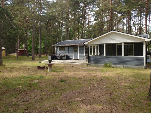 Cirka 200 meters promenad till stranden. En Storstuga samt två gästrum med egna ingångar i separat byggnad